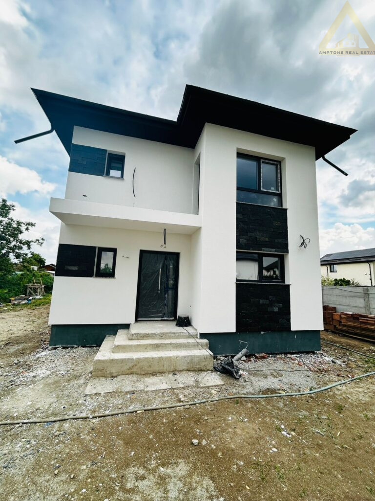 Casă modernă P+1 cu 3 dormitoare, birou și teren de 440 mp în Tunari – lângă parc