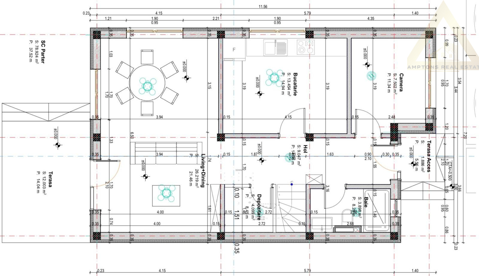 • Living + dining open space de 26 mp, cu lumină naturală din plin