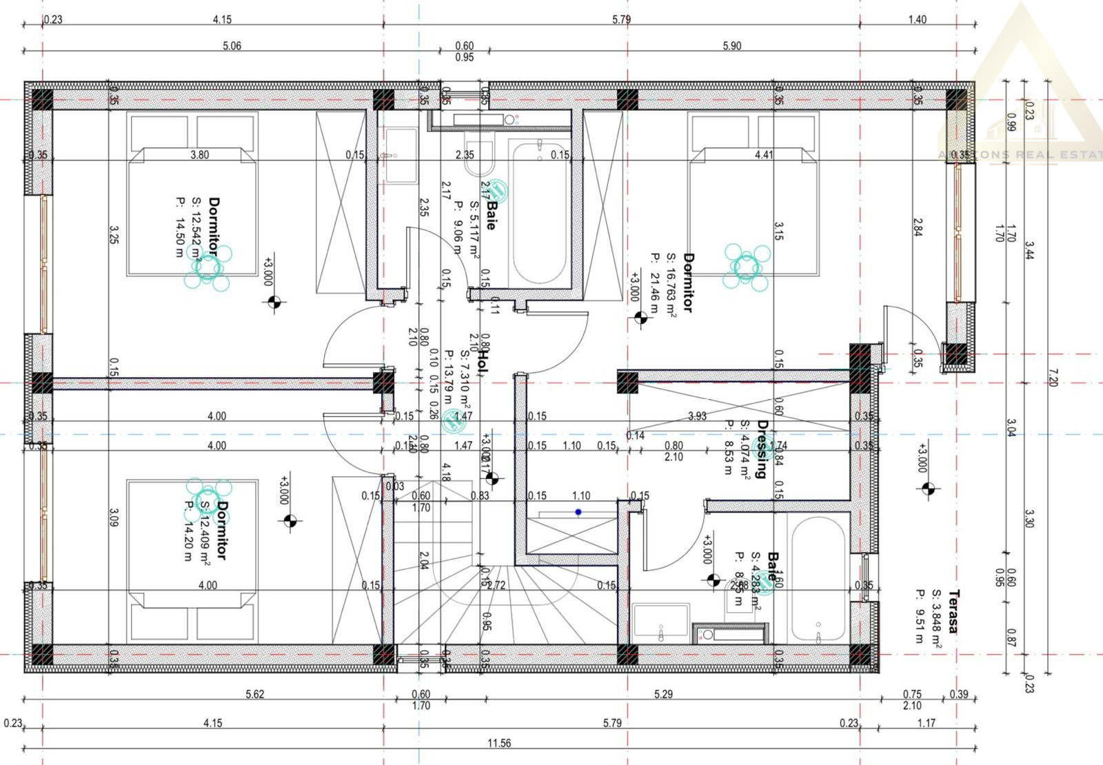 • 3 băi în total, gândite pentru confortul întregii familii